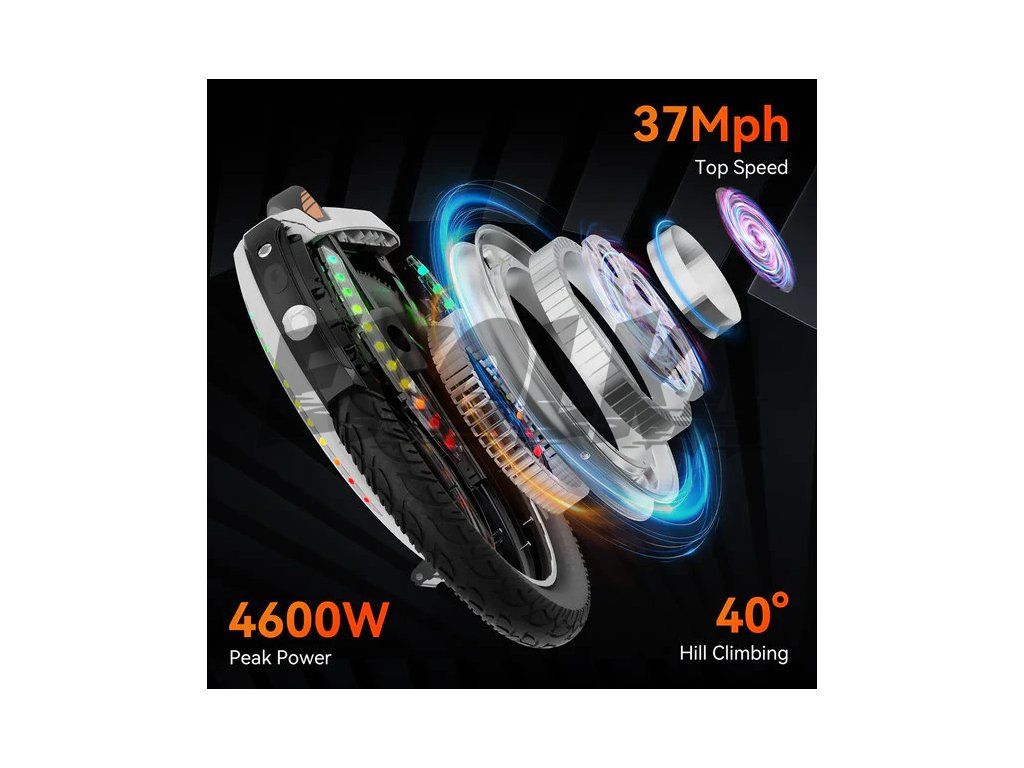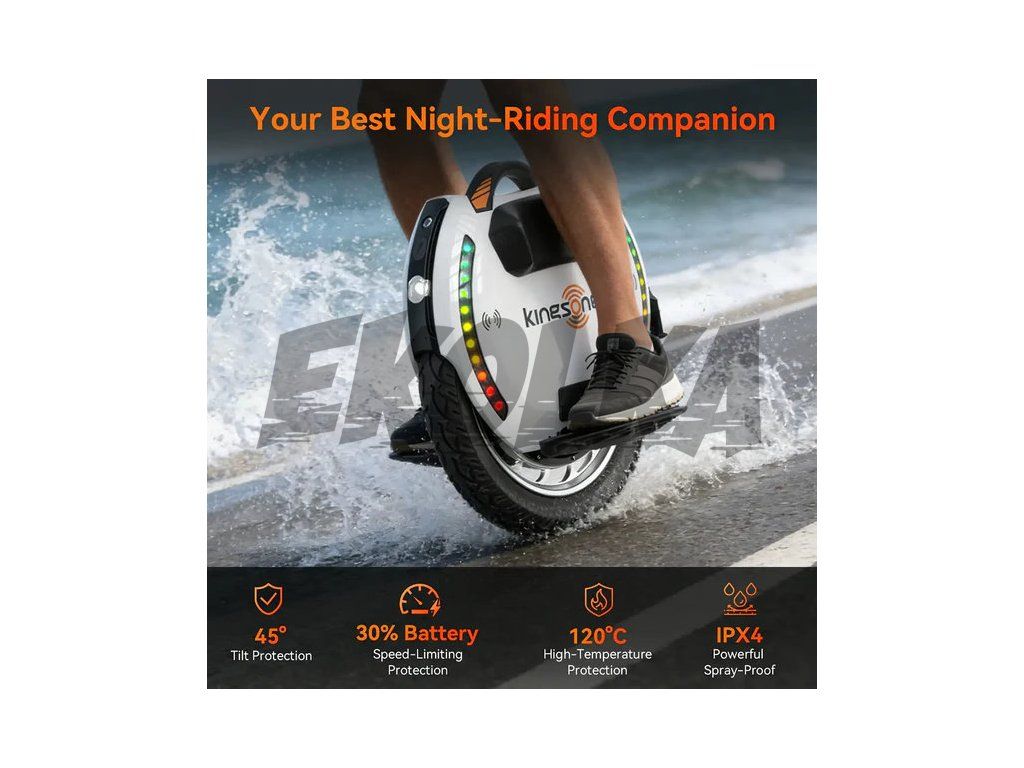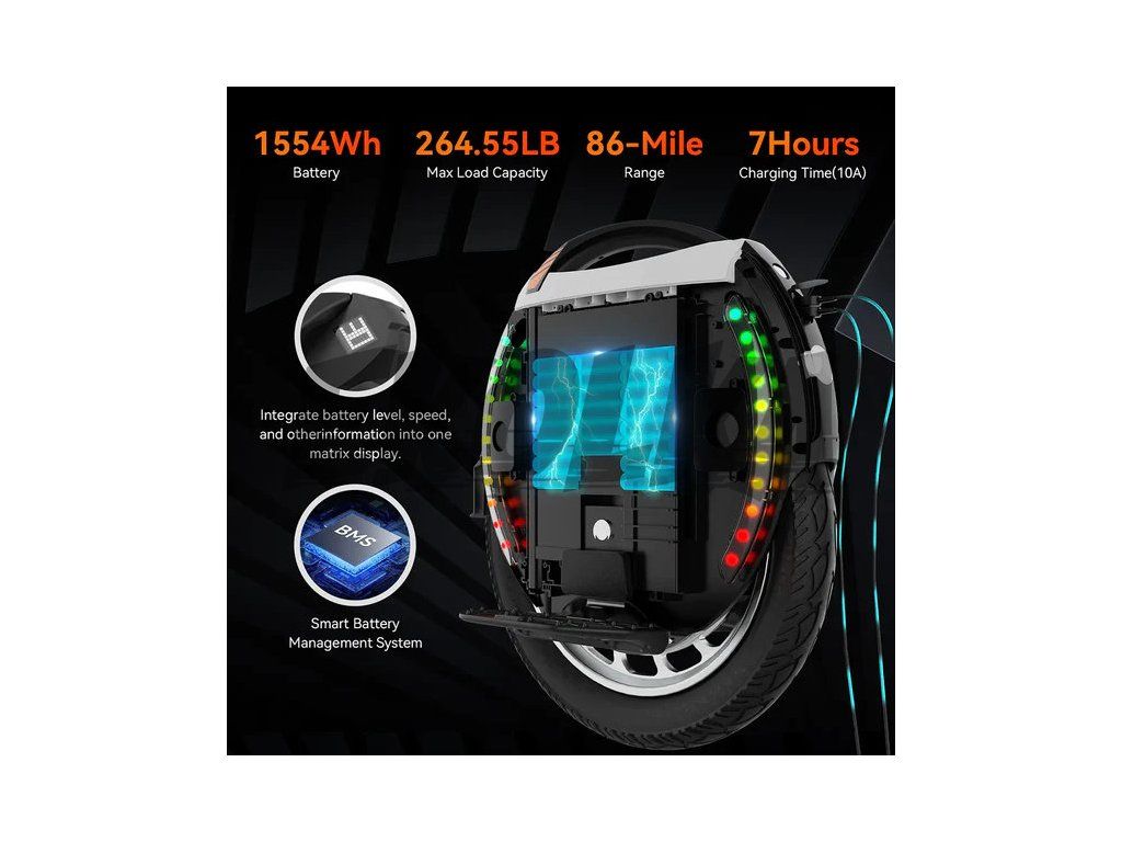 Aplikace KingSong umožní přizpůsobit LED světla a poskytne údaje o výkonu. Inteligentní BMS systém sleduje jednotlivé články baterie a chrání je proti přebití, přehřátí i hlubokému vybití. Rychlé OTA aktualizace firmware zajišťují, že váš stroj je vždy aktuální.